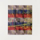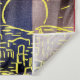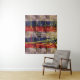 Dieser französische Wandteppich in Rot, Blau und Grau mit einer Eiffelturm-Skizze im gelben Hintergrund hat 3 Stellen für die Textanpassung.