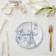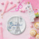 Blaue Blumen auf Zeichnungen von pariser architektonischen Sehenswürdigkeiten (Triumph Arch und Eiffelturm).