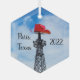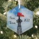 Einzigartige Glasverzierung mit dem Eiffelturm von Paris, Texas mit dem roten Cowboyhut.