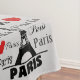 Pariser Textilabdruck mit Eiffelturm und Dekoration der roten Herzen. Es ist möglich, die Hintergrundfarbe zu ändern und das Design mit Ihrer Wahl zu ergänzen.