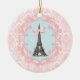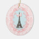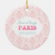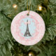 Dieser Entwurf wird durch Paris, Stadt der Mode und des Lichtes inspiriert! Er kennzeichnet den berühmten Eiffel-Turm in der Vintagen Illustrationsart, wohin ein hellrosa Band liebenswürdig auf die Oberseite legt, um eine girly Touch zu addieren. Der Hintergrund wird von den hellblauen und weißen Tupfen und vom rosa und weißen Damast gemacht. Schließlich ist er durch einen Vintagen Artrahmen im rosa Wirbel gerahmt. Behalten Sie Ihre romantische Reise zu Paris-Erinnerungen immer nah an Ihnen mit dieser entzückenden Verzierung. Sie können den vorbildlichen Text auf der Rückseite ändern, indem Sie Ihr Namen- und Reisedatum erreichen.