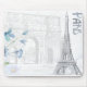 Schönes Vintages Paris mit dem Eiffel-Turm und einem Bündel des Beruhigens der blauen Blumen.