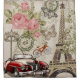 Paris Vintage Postkarte. Vintages Schmetterlingposter! Retrodekoration mit Blume, Autos und Eiffelturm. Vintag, Illustration, Blume, Auto, Retro, Collage, Poster, Schmetterling, Fahrrad, alt, France, Postcard, Eiffel, Dekor, Land, Papier, 1950er Jahre, Reise, Auto, Reise