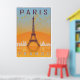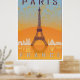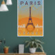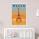 Paris vintage Plakat in orange and blue textured background with skyiline in whit
