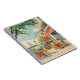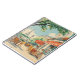 Eine charmante Vintage Illustration einer sonnigen Pariser Café-Terrasse mit Rattanstühlen, rot gestreiften Markisen und Blick auf den Eiffelturm. Die ästhetische und warme Atmosphäre der 50er Jahre macht es zu einem idealen Ort für nostalgische oder reisebezogene Dekoration.