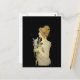 Ein Design aus dem Jahr 1899 mit einer wunderschönen Frau in griechischem Gewand mit einer Feder. Profilstück auf einem bedrückten schwarzen Hintergrund.