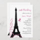 Ein großer, eleganter und prächtiger Eiffelturm und extravagante französische Schrift schmücken diese Pariser 21. Geburtstagseinladung. Diese Einladung ist auf dem Grundpapier wiedergegeben. Ich empfehle jedoch das Gewicht und die Textur des Leinenpapiers.