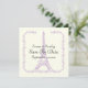 Paris Hochzeit Eiffelturm Licht lila Ankündigung Datum freihalten. Ein elegantes Design voller Klasse und Finesse, mit dem Eiffelturm in einem feuchten Rahmen auf Elfenbeinhintergrund lila.