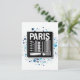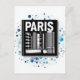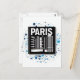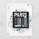 Eine kleine Sammlung von Reisebüchern über Paris, Frankreich in Schwarz und Weiß. Farbtöne von blauen Aquarellpunkten beleuchten den Hintergrund.