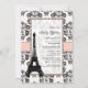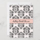 Hübsche und raffinierte Pariser Braun-Dusche mit schwarz-weißem Damast-Blumenrahmen, bedrucktem rosa Farbband-Design und dem Eiffelturm. Entworfen von Chrissy H. Studios, LLC.Alle Rechte vorbehalten.