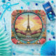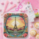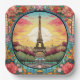 Die Teller des hellen Pariser Sonnenuntergang Eifel Tower Paris France Blumenpapier im Pariser Deko-Stil mit dem Eifelturm in einem kühlen Blumenrahmen. Erstellt von Evco Studio www.zazzle.com/store/evcostudio