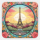 Parisian Sunset Eiffel Tower Paris French Floral Quadratischer Aufkleber