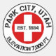 Fett Schwarz-weißer und roter Rundaufkleber im Stil der klassischen Skiraum-Grafik. Dieser runde Park City Aufkleber kann auf alle möglichen Gegenstände, wie Wasserflaschen, Helme, Ski, Snowboards, Autos, usw. gehen.