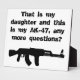 Plaque ist ein großartiges Geschenk für jeden Papa mit Töchtern, die anfangen zu gehen. Hänge einen im Eingang deines Hauses, hänge einen an der Schlafzimmertür deiner Tochter, hänge einen in der Garage auf, hänge sie überall auf! Lass die Koffer zweimal nachdenken! Gutes Geschenk für jeden Papa und ist sicher, sie zum Lächeln zu bringen! Features eine schwarze AK-47 und das Sprichwort, Das ist meine Tochter und das ist mein AK-47, weitere Fragen?