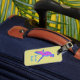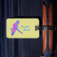 Lebhafter, grafischer zeichn eines tropischen Papagei, auf einem Ast gekrönt und in einem exotischen Inselmuster dargestellt, in Fuschia, Rot, Türkis, Blau, Gelb, Weiß und Schwarz.