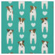 Dieser Jack Russell Terriers Stoff weist ein gestaffeltes, säulenförmiges Muster von acht illustrierten JRTs auf, die mit weißen Herzen wechseln - die Hunde haben unterschiedliche braune und schwarze Kopf- und Körpermarkierungen und jeder zeigt eine unwiderstehliche Hundeschicht - anpassbarer Hintergrund ist blau - Jack Russell Terriers pattern © katz_d_zynes 2019