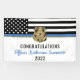 Dieses Design verfügt über eine Polizeiflagge mit schwarz-weißen Streifen und einen dünnen blauen Streifen. Ein großartiger Weg, um der neuen Polizei-Akademie zu gratulieren. Passen Sie den Namen des geschlossen Strafverfolgungsbeamten in Gold an. Feiern Sie diesen Meilenstein im Stil!