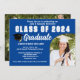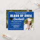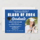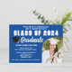 Diese moderne, in Blau und Weiß gehaltene Senior Foto Graduation Party Einladung zeigt klassische weiße Typografie Ihres Uni-Namens für die Klasse von 2025. Passen Sie mit Ihrem geschlossen Jahr unter der schicken handgeschriebenen Drehbuch und schwarzen Gradmütze für große Einladungen an. Fügen Sie neben Ihrem Foto Ihre Party- oder Zeremoniedetails hinzu.