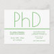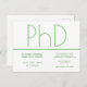 Eine Postkarteneinladung für eine Doktoranden-Abschlussfeier. Diese minimalistische Einladung ist weiß und grün. Alle Wörter können angepasst werden.