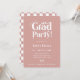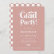 Einladung zum Abschluss eines Retro-Typenstudiums. Features, Retro-Typografie in Weiß mit staubigen Rose rosa Hintergrund und passender Schachbrett-Mustersicherung.