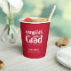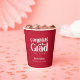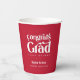 Glückwunsch Grad. Papierbecher für den Retro-Typ-Abschluss Features, Retrotypografie in weiß auf rotem Hintergrund.