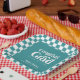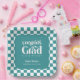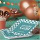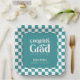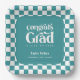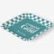 Glückwunsch Grad. Teller für die Papiersorte Retro Type Graduation Party Funktionen, Retrotypografie in Weiß auf aquamarinem Hintergrund und Koordination der Schachbrett Muster Rand.