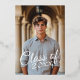 Fügen Sie eine vertikale Foto- und Abschluss-Ankündigung sowie Party-Informationen hinzu. Fügen Sie jedes Jahr ein, um dieses elegante und moderne Design zu personalisieren. Dieses kann für jeden Absolventen - Gymnasium, Uni, Graduiertenschule, Meditationsschule oder sogar Fachschule - genutzt werden.