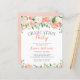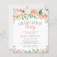 Schöne Blumenbudget Graduation Party Einladungen. Das Design umfasst handbemalte Aquarellfarben-Rose, Peonies und Hydrangeas in Schattierungen oder Rosa, Pfirsich, Korallen und Creme.