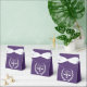 Humores Juristendesign mit Justizskala, personifiziert auf einem lila Hintergrund für Jurastudium oder Kanzlei feiern.