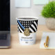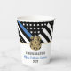 Dieses Design verfügt über eine Polizeiflagge mit schwarz-weißen Streifen und einen dünnen blauen Streifen. Ein großartiger Weg, um der neuen Polizei-Akademie zu gratulieren. Passen Sie den Namen des geschlossen Strafverfolgungsbeamten in Gold an. Feiern Sie diesen Meilenstein im Stil!