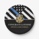 Dieses Design verfügt über eine Polizeiflagge mit schwarz-weißen Streifen und einen dünnen blauen Streifen. Ein großartiger Weg, um der neuen Polizei-Akademie zu gratulieren. Passen Sie den Namen des geschlossen Strafverfolgungsbeamten in Gold an. Feiern Sie diesen Meilenstein im Stil!