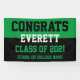 Hang diese Green & Black Minimalistisch Graduation Party Banner zu Ehren Ihres Absolventen. Personalisieren Sie Ihren Absolvent mit dem Namen, der Schule und dem Unterrichtsjahr. Dieses farbenfrohe Banner mit klassischem Schriftart und viel Schulgeist.