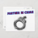 Perfekt für die andere Hälfte der Mühe! Dieses Design beinhaltet eine Reihe von verschlossenen Handschellen, die in zwei Hälften geschnitten sind, die linke Seite mit der Phrase "Partner in Crime", die oben in einem leuchtenden Neonzeichen in Rot und Blau des Bar geschrieben wurde, die nach oben abgleiten.