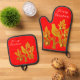 Partridge in einem Birnenbaum Rot frohe Weihnachte Ofenhandschuh & Topflappen-Set