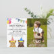 Original gezeichnet von Komila Y. Niedlicher Bär und Löwen wilde Party Tiere illustrieren Geburtstagseinladung. Personalisierbar