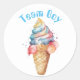 Wählen Sie Team rosa oder Teamblau bei einem Geschlecht offenbaren Party mit diesem Aufkleber! Illustration eines eisblauen Eises in Aquarellfarbe. Im Text steht "Teamboy".