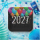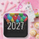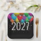 Farbenfrohe Party Ballons und Sternkonfetti auf schwarz für ein Neujahrsfest 2026. Das Jahr kann bearbeitet werden.