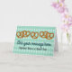 Ein lustiges Bread-Bretzel-Design auf einem jazzigen, zwei Töne rautenförmigen Hintergrund, mit bis zu 5 Zeilen personalisierten Textes: 2 vorne, 2 innen und 1 hinten. Geben Sie Ihren Gruß, Namen, Party-Infos oder anderen Text nach Bedarf ein und Sie werden mit dem lustigen salzigen Nibbles-Design in kürzester Zeit feiern können!
