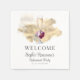 Hübsche Papierservietten aus dem Party mit Champagnerglas in Aquarellfarbe und rosa bordeauxfarbene Blumenmuster auf einem Waschbecken aus Glitzer. Stilvoll und hübsch. Feiern Sie Ihren Ruhestand mit einem Champagner-Toast-Thema.