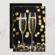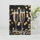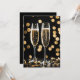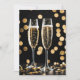 Pair of Champagner Flöten mit goldenem Konfetti und Barklichter auf schwarz für ein neues Party zum Silvesterabend. Alle Texte können geändert werden.