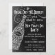 Break Out the Bubbly - Silvester Party Einladung in Black & White. Hübsche Champagnerflasche im laky-Stil mit Liebesvögeln, Trauben und Weinreben. Ideal für Verlobung, neue Jahre oder jede Feier. Passen Sie diese Einladung mit Ihrem eigenen Text an. Original Illustration von pj_design.