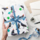 Schwarze Krähen und Raben mit bunten Hüten und Ballons auf diesem festlichen Geburtstagsverpackungspapier.