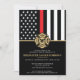 Dieses Design verfügt über eine Feuerwehrflagge mit schwarz-weißen Streifen und einen dünnen roten Streifen. Das Abzeichen eines Feuerwehrmanns sitzt über allen Einzelheiten des Party für den pensionierten Feuerwehrmann, Leutnant oder das Party für das Ruhestand des Chefs.