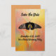 Save the Date häusliche Erwärmung Party mit einem farbenfrohen Hintergrund in Orange und Gelb, und ein hübsch braun und gelb Schmetterling, geschnitten, um die Farbe zu ändern. Alle Wörter können geändert werden. Dank dem Hungryjpeg für das Hintergrunddesign.