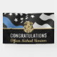 Dieses Design verfügt über eine Polizeiflagge mit schwarz-weißen Streifen und einen dünnen blauen Streifen. Ein großartiger Weg, um der neuen Polizei-Akademie zu gratulieren. Passen Sie den Namen des geschlossen Strafverfolgungsbeamten in Gold an. Feiern Sie diesen Meilenstein im Stil!