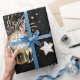 Silvesterabend oder Neujahr Party Geschenkpackung mit schwarzem Gold, mit einer Uhr für Mitternacht, Champagner und Geschenk bereit. Gönnen Sie Ihren Party oder Ihren bedeutsamen Mitmenschen etwas Besonderes, um das kommende Jahr zu feiern. Gold, Schwarz, Gold, Glitzer.
