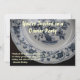 Ein lässiger, weißer und blauer Teller ist der Hintergrund dieser Party Einladung.