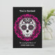 Meine Version eines künstlerischen Zuckerschädels in weiß, heiß rosa und schwarz mit vielen eleganten Akzenten auf 12x18 Einladungen leicht personalisieren.