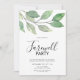 Wirst du das Haus wechseln? Diese botanische Abschiedsfeier lädt Familie und Freunde zu einem Abschiedsfest ein. Es ist mit Aquarellgrün und eleganter Schrift-Typografie dekoriert. Einfach anpassbar. Original Wasserfarbe © Michele Davies.