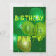Grüne Geburtstagsfeier Einladung für erwachsene Männer oder Frauen. Große Ballons in Grüntönen schmücken beide Seiten dieser Flachkarten. Kühner Text auf der Vorderseite, um ein Party, mit einem Platz für sein Alter anzukündigen. Ideal für einen Meilenstein in der März oder um einen Iren zu feiern.